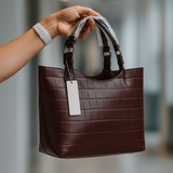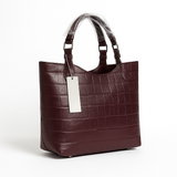 Turn heads with the Croc-Embossed Burgundy Tote Bag β where luxury meets practicality in flawless harmony.