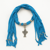 Elevate your style with this versatile Cross Charm Pendant Jewelry Necklace Scarf. Designed with elegance and grace, this piece combines the beauty of a delicate pendant with the soft touch of a fashionable scarf. Perfect for both casual and formal wear, it effortlessly adds sophistication to any outfit.
