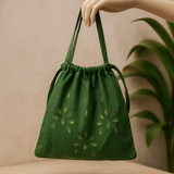 Add a touch of charm to your everyday essentials with this Green Drawstring Bag with Floral Cut-Outs. Featuring a stylish floral cut-out design and a convenient drawstring closure, this bag combines practicality with feminine elegance.