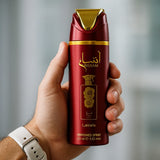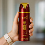 Wrap yourself in luxury with Ansaam Gold by Lattafa, a captivating body spray that combines elegance, warmth, and sophistication. Crafted with exquisite notes, this 200ml perfumed spray delivers a long-lasting fragrance that lingers beautifully throughout the day.