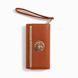Elevate your everyday essentials with the Michael Kors Brown Leather Wristlet Wallet, a timeless accessory that blends elegance with practicality. Crafted from genuine leather, this wallet is designed to keep your cards, cash, and phone secure while adding a touch of luxury to your look. The wristlet strap makes it easy to carry on the go, whether for a casual outing or an evening event.