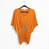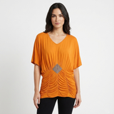 The Orange Ruched Blouse is a stylish and comfortable top perfect for casual occasions during the summer and spring seasons. Made of lightweight polyester material, this blouse features a solid orange color with ruffle accents, giving it a trendy and feminine look. It is a regular fit blouse with a machine washable design, making it easy to care for and perfect for everyday wear. Ideal for women looking for a versatile and chic addition to their wardrobe.