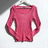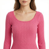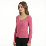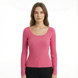Crafted with a soft, ribbed knit texture, it offers a chic and subtle detail that elevates any outfit. The classic scoop neck design is timeless and perfect for layering under blazers, cardigans, or wearing solo to showcase its elegant simplicity. The long sleeves provide a comfortable fit for any season.