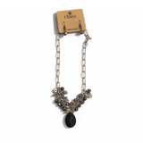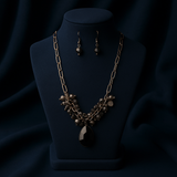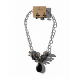 VENUS Fashion Necklace and Earring Set with Black Pendant and Beaded Clusters