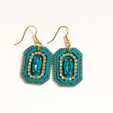 Vintage-Inspired Teal & Gold Chain Drop Earrings with Crystal Accents